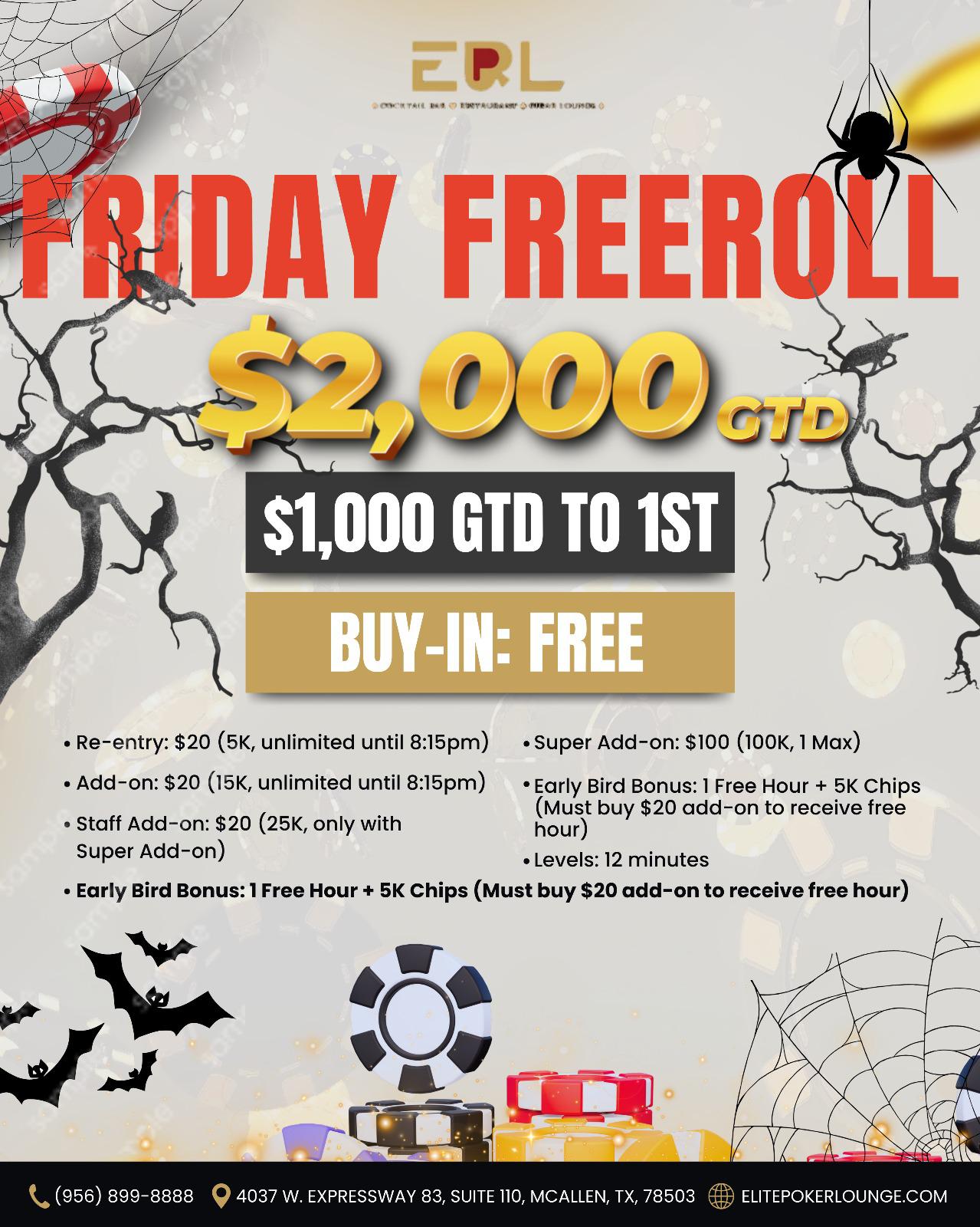 FREEROLL FRIDAY 2K GTD: 1K TO 1ST