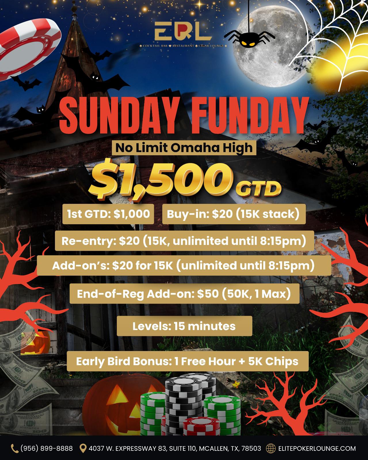 SUNDAY FUNDAY NO LIMIT OMAHA 1.5K GTD: 1K TO 1ST