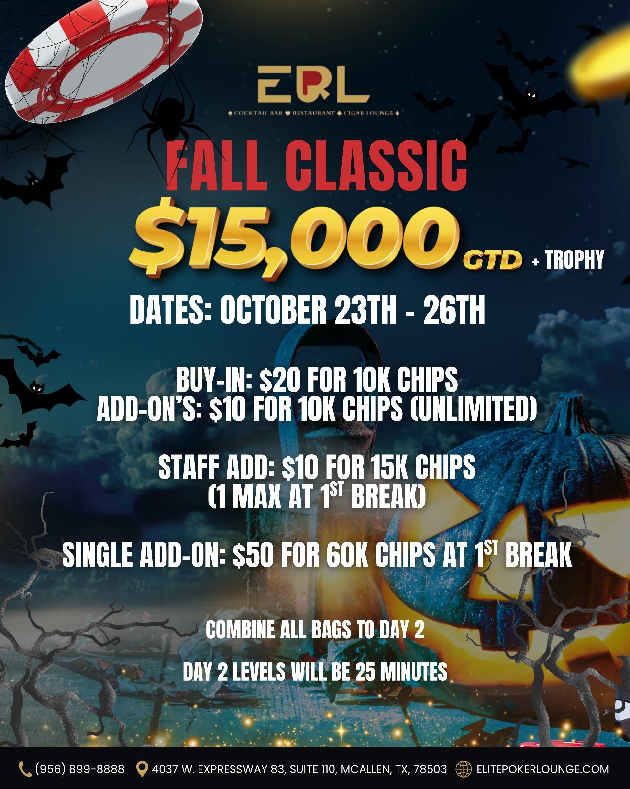 Fall Classic 15K GTD (DAY 1A, 1B, 1C - 6:00 PM), 1D Turbo Flight - 12:00 PM, DAY 2 - 6:00 PM